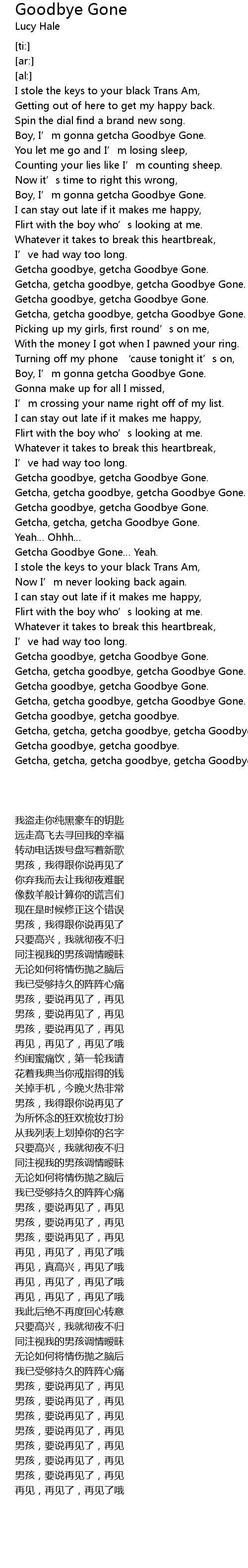 | [02:44.27] | Getcha, getcha, getcha goodbye, getcha Goodbye Gone. |
