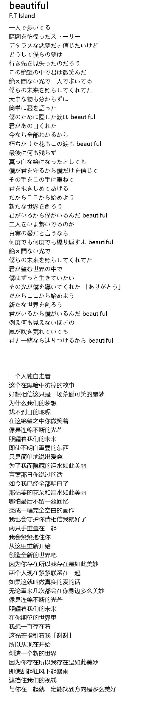 | [01:20.490] | 僕のために隠した涙は beautiful |
