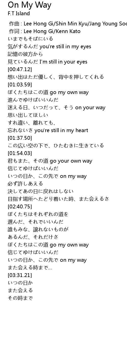 | [01:15.89] | 迷える日、いつだって、そう on your way |