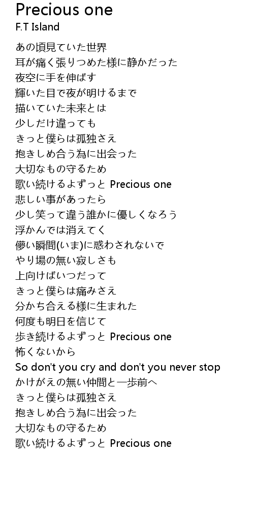 | [01:48.77] | 歩き続けるよずっと Precious one |