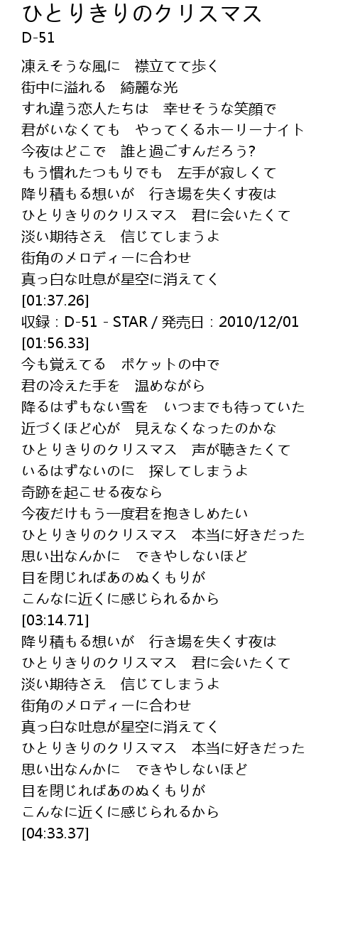 | [03:47.70] | ひとりきりのクリスマス 君に会いたくて |