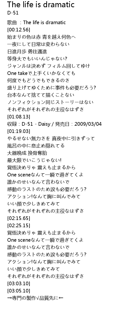 | [00:00.00] | 歌曲 :The life is dramatic |