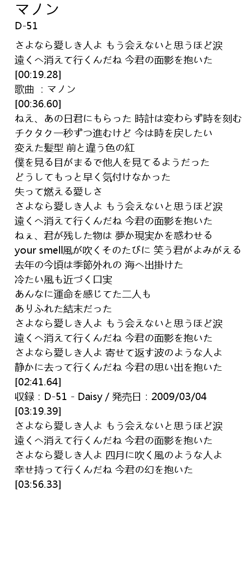| [02:43.64] | 収録:D-51 - Daisy/発売日:2009/03/04 |