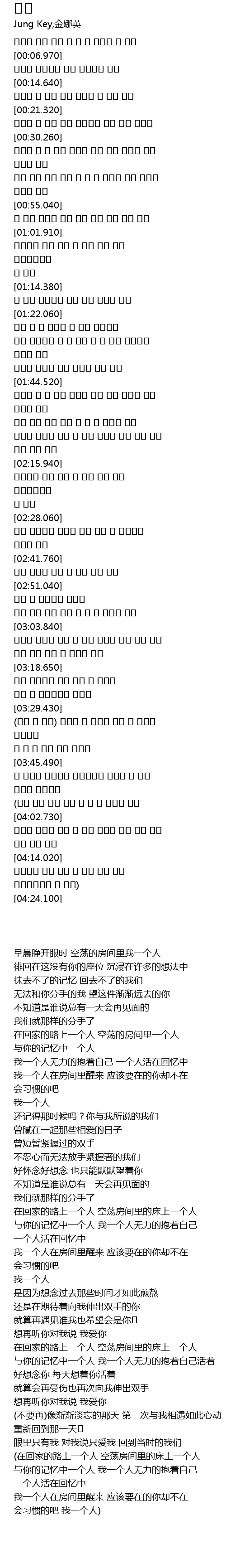 | [00:45.100] | 집에 오는 길을 홀로 텅 빈 방 침대에 홀로 너와의 기억에 홀로 |