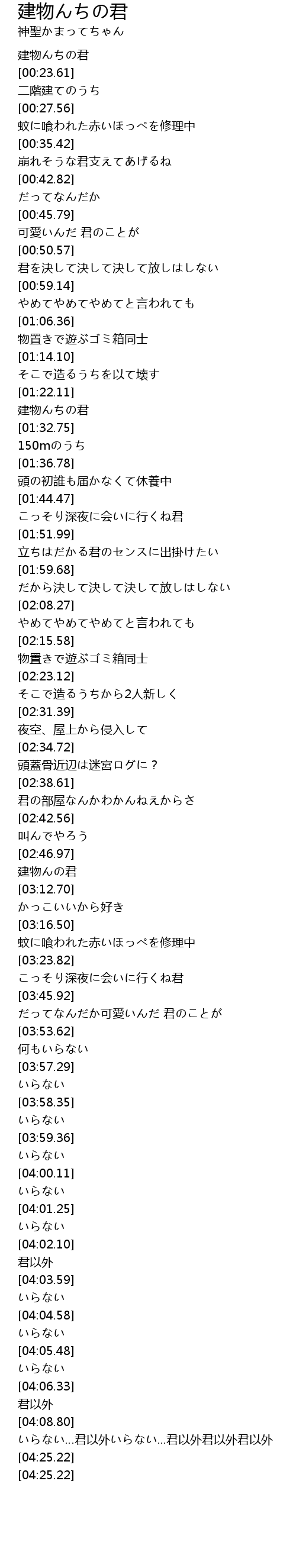 | [00:22.41] | 建物んちの君 |