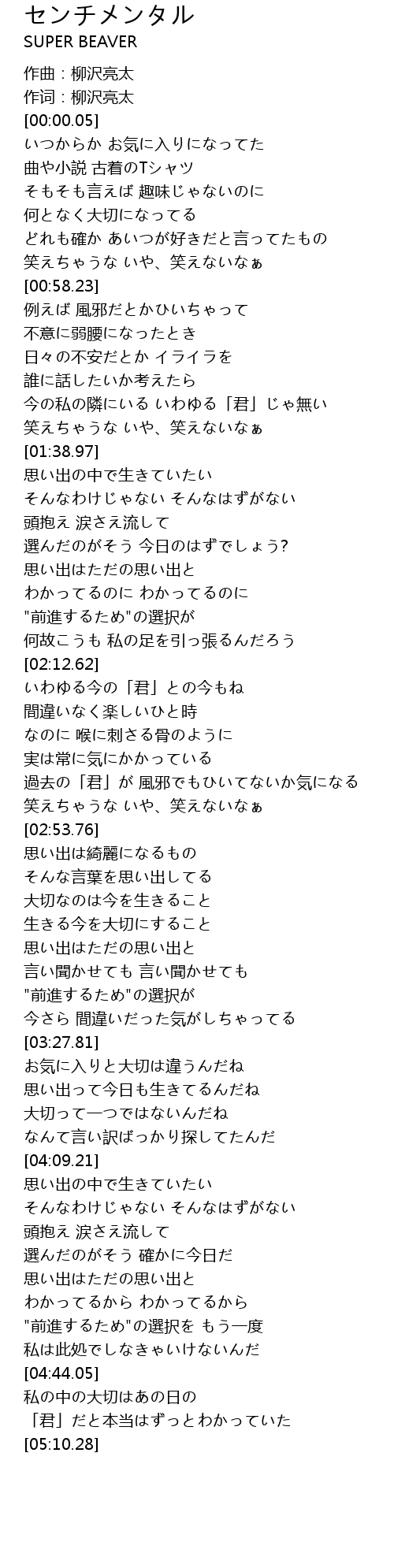 | [03:42.35] | お気に入りと大切は違うんだね |
