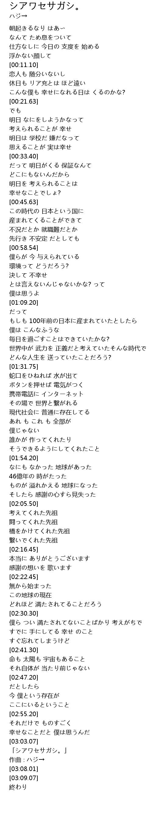 | [03:04.01] | 「シアワセサガシ。」 |