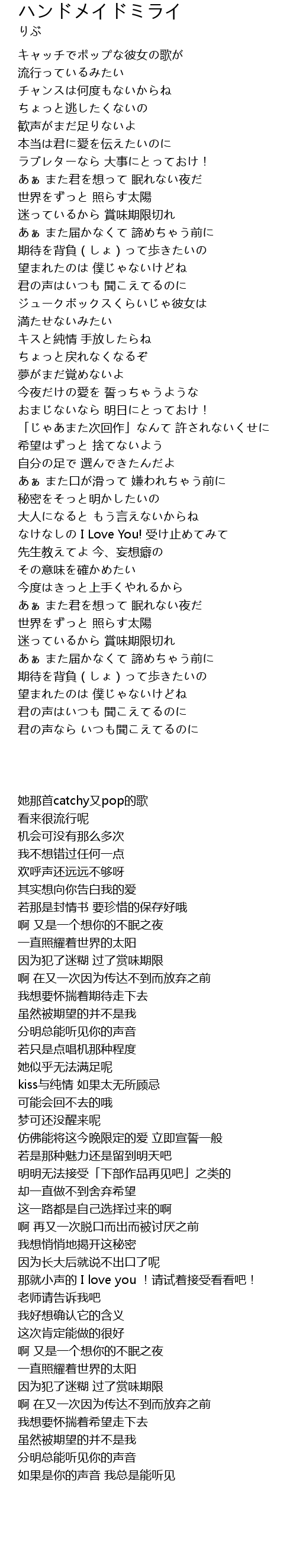 | 歌曲 | ハンドメイドミライ |