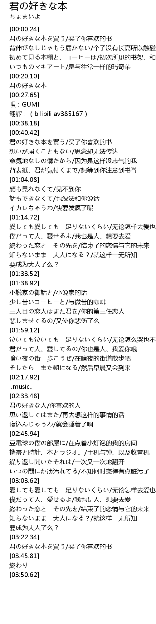 | [03:40.03] | 君の好きな本を買う/买了你喜欢的书 |