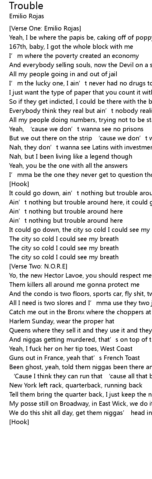 | Yeah, I be where the papis be, caking off of poppy seed | |