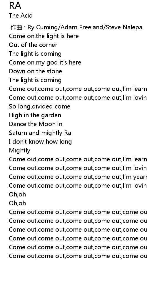 | [02:58.19] | Come out,come out,come out,come out,come out(oh) |