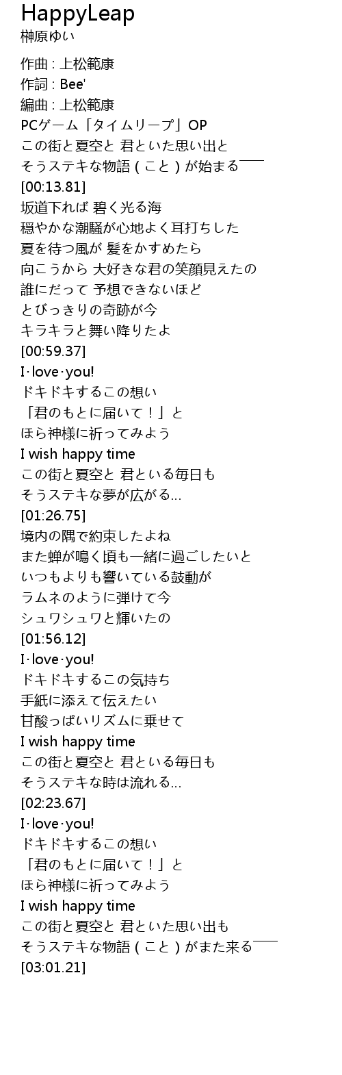 | [00:59.60] | I・love・you! |