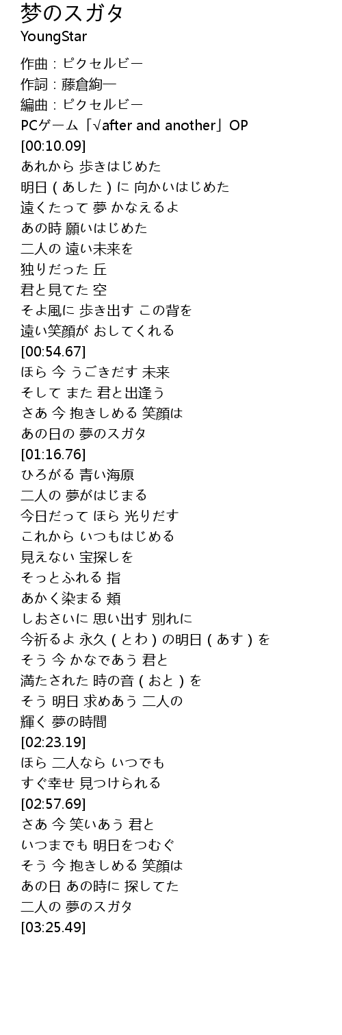 | [00:06.56] | PCゲーム「√after and another」OP |