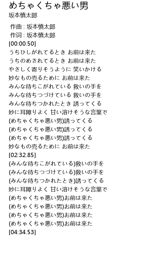 | [04:15.42] | (めちゃくちゃ悪い男)お前は来た |