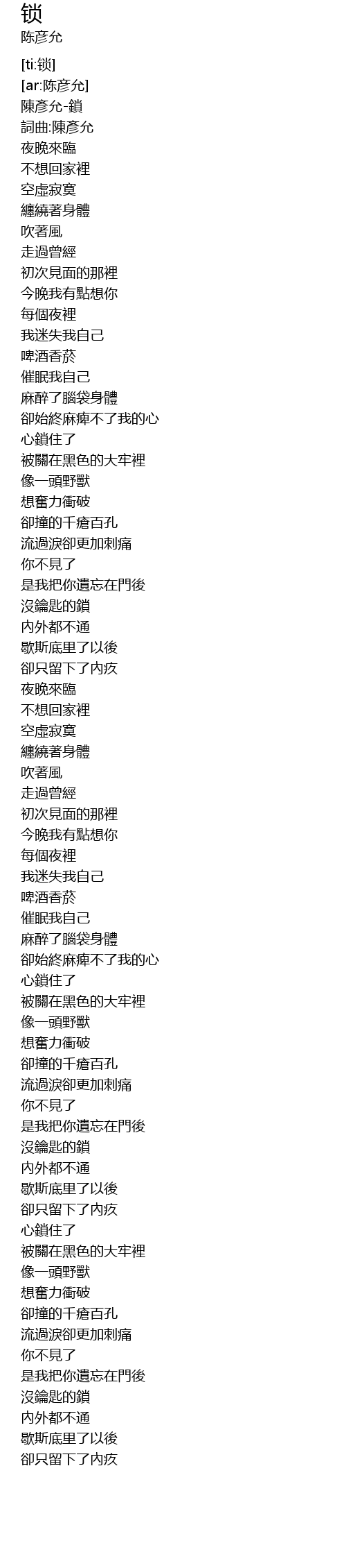 | [00:01.154] | 陳彥允-鎖 |