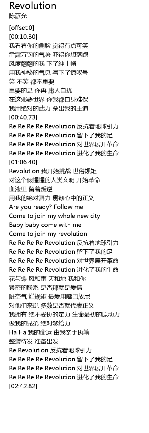 | [00:42.31] | Re Re Re Re Revolution fan kang zhao di qiu yin li |