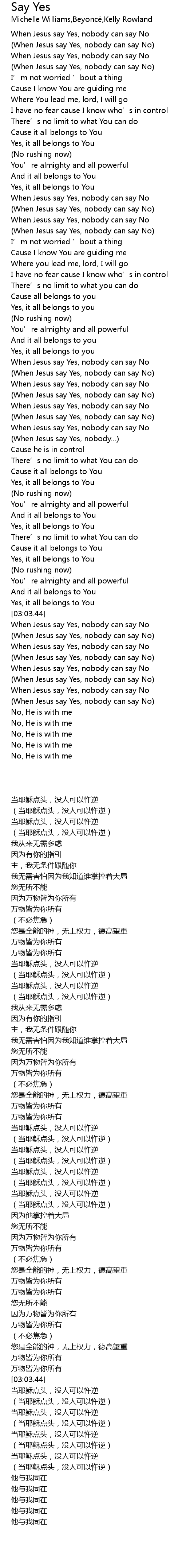 | [03:22.71] | (When Jesus say Yes, nobody can say No) |