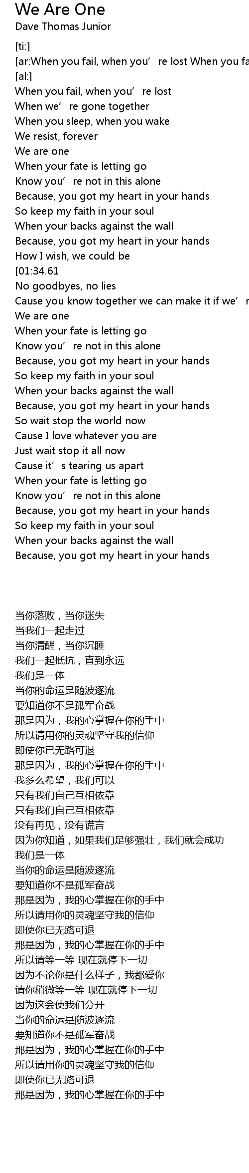 | [00:49.72] | We are one |