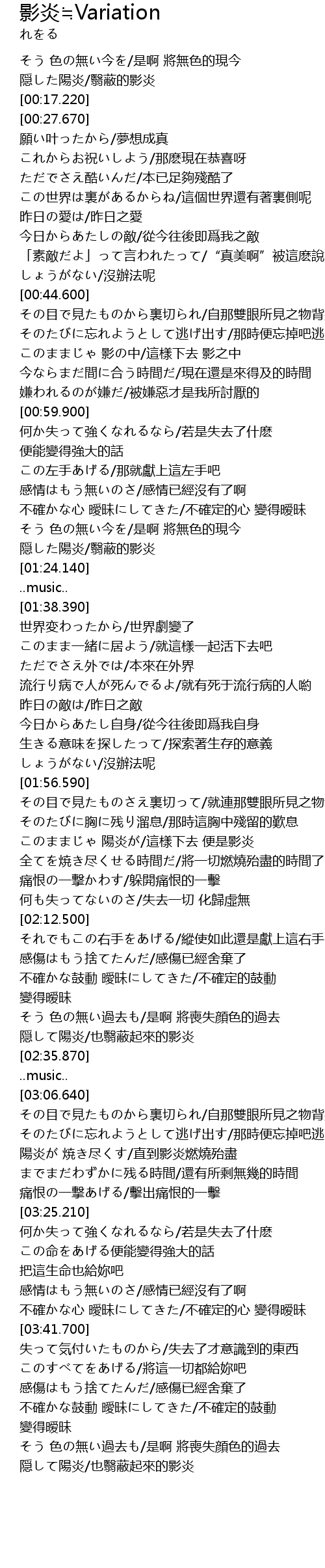 | [03:17.860] | 陽炎が 焼き尽くす/直到影炎燃燒殆盡 |