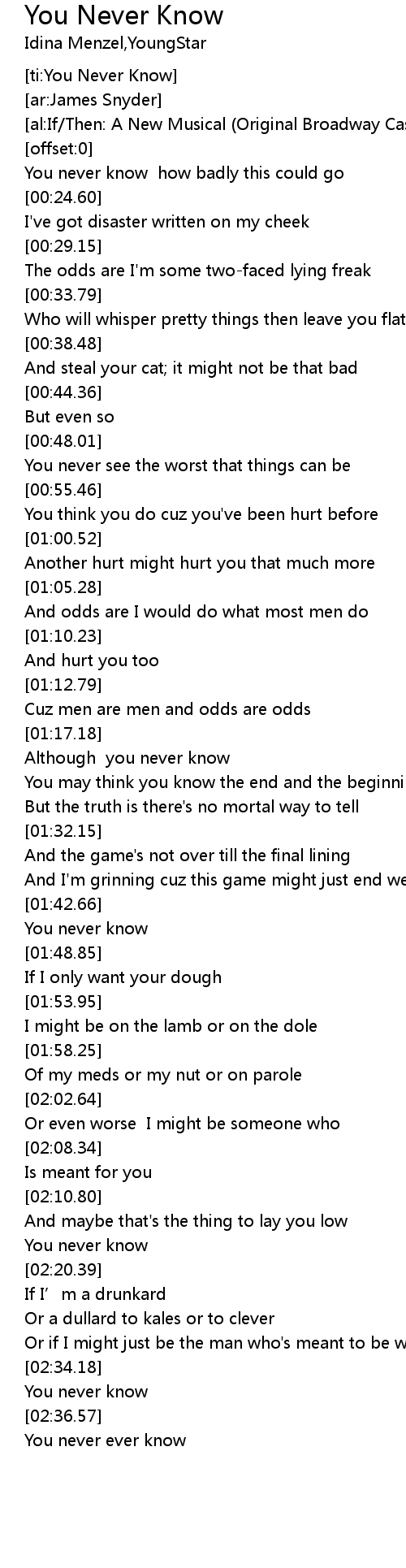 | [ti:You Never Know] | |