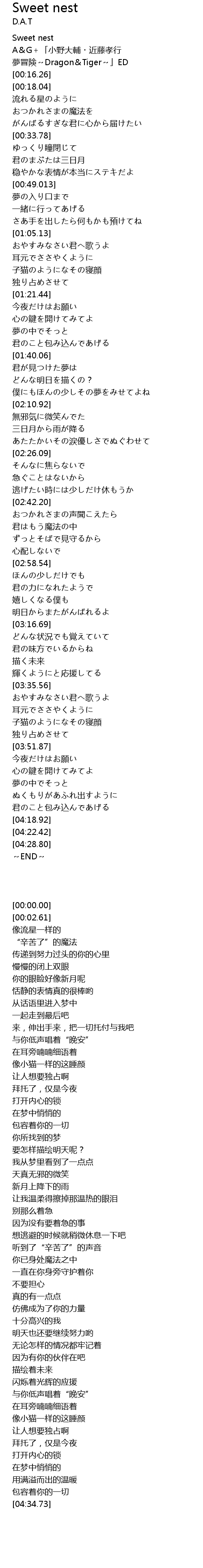 | [00:00.00] | Sweet nest |