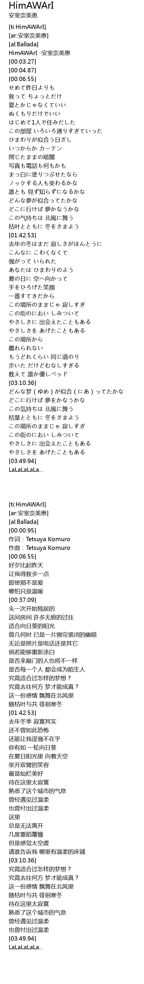 | [00:00.95] | HimAWArI -安室奈美惠 |