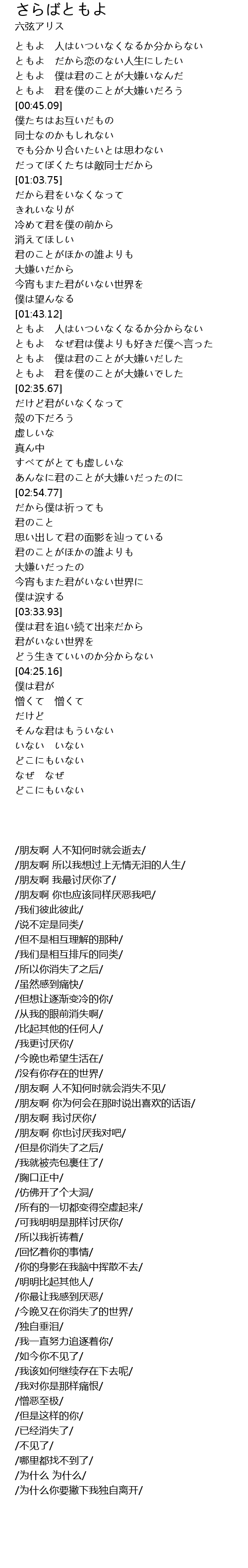 | [02:19.32] | ともよ 僕は君のことが大嫌いだした |