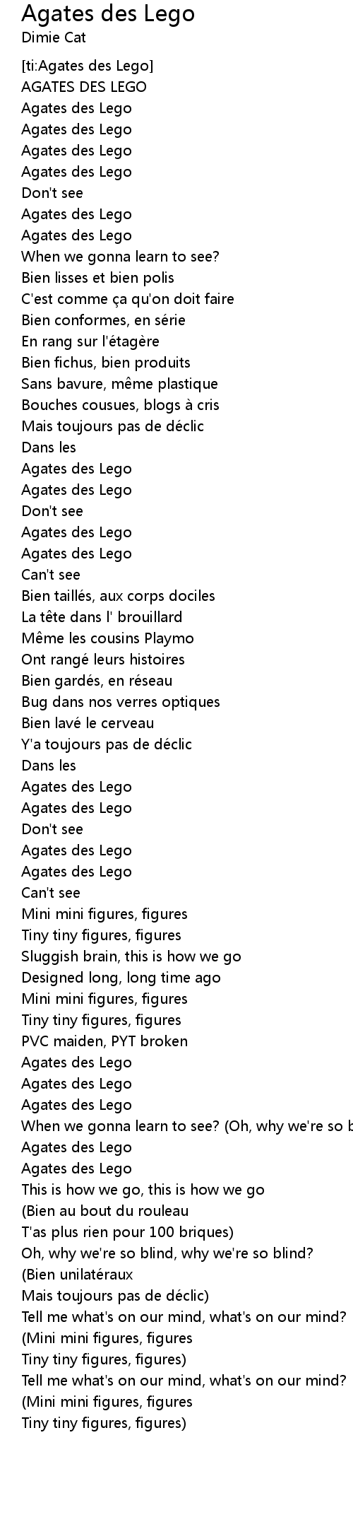 | [01:59.67] | Agates des Lego |