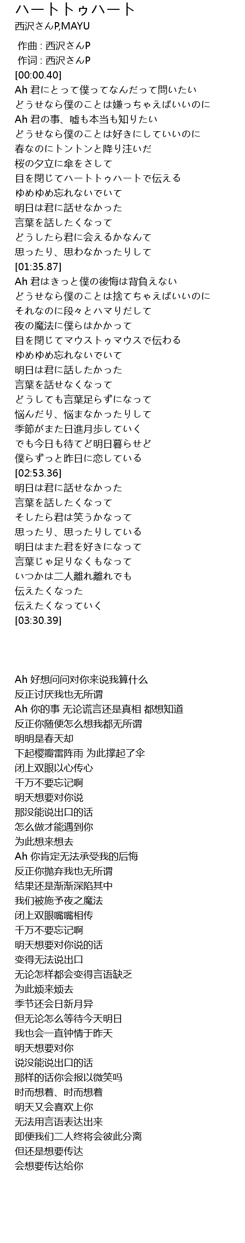 | [02:15.94] | ゆめゆめ忘れないでいて |