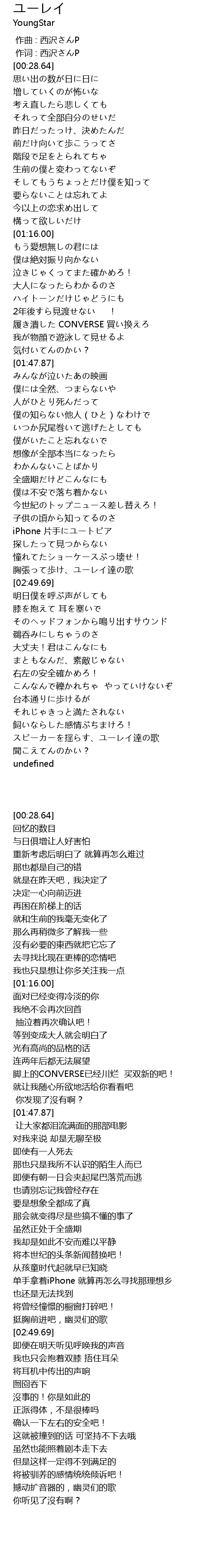 | [00:01.00] | 作词 : 西沢さんP |