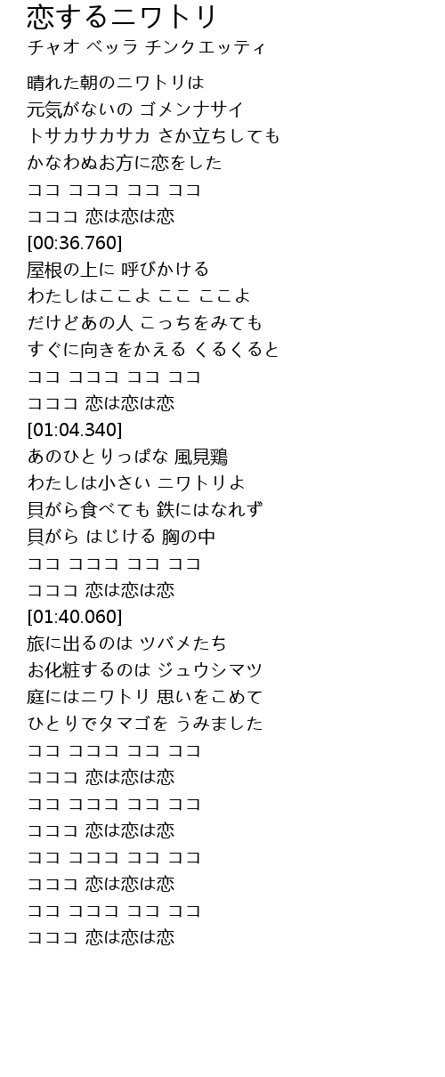 | [01:37.560] | コココ 恋は恋は恋 |