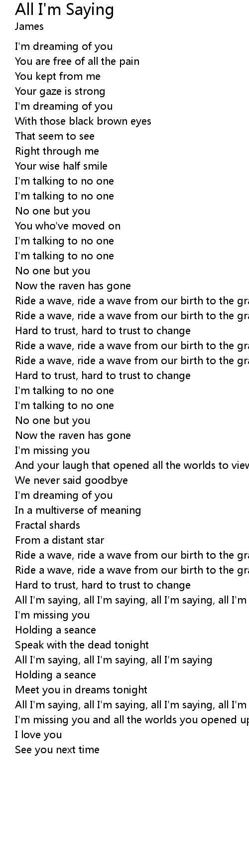 All I'm saying, all I'm saying, all I'm saying, all I'm saying |