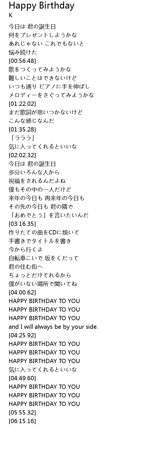 | [04:26.52] | HAPPY BIRTHDAY TO YOU |
