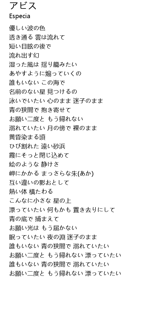 お願い二度と もう帰れない 漂っていたい |