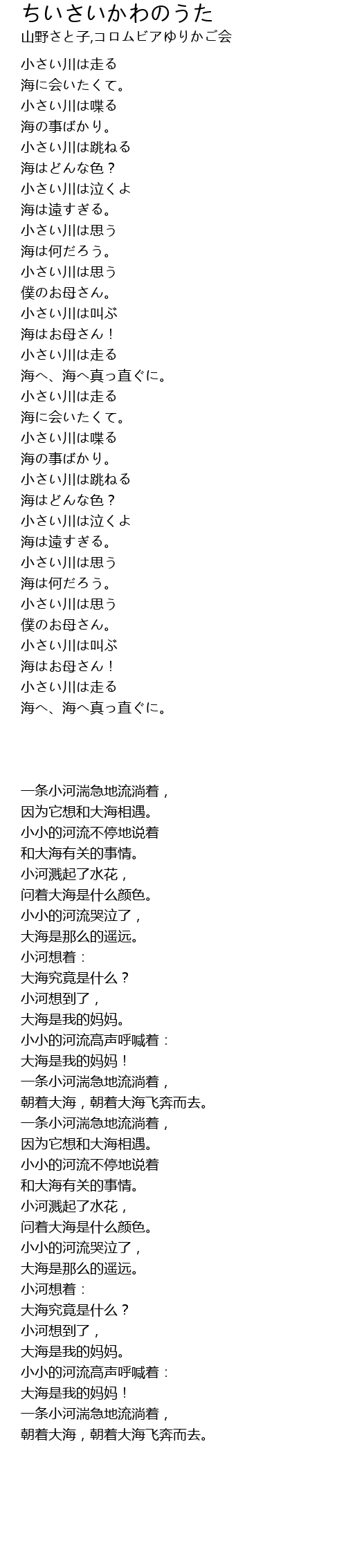 | 歌曲 | ちいさいかわのうた |