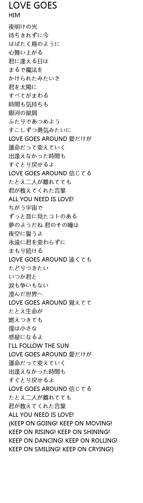 | 歌曲 | LOVE GOES |