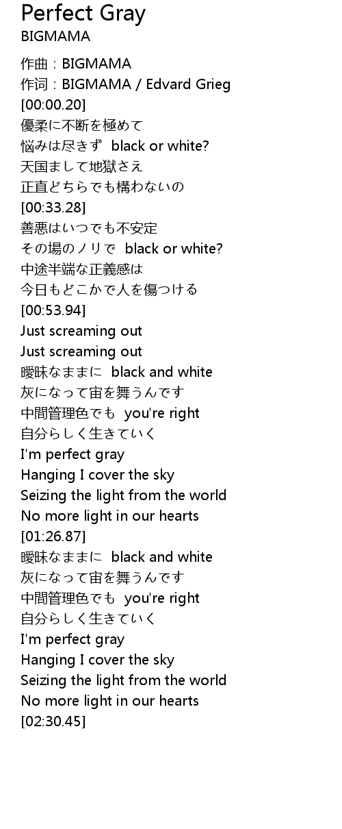 | [00:00.05] | 作词:BIGMAMA / Edvard Grieg |