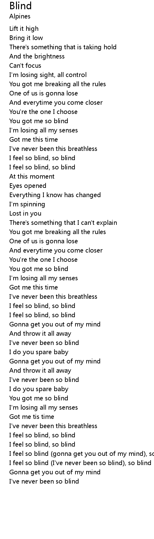 | I feel so blind (gonna get you out of my mind), so blind (oh) | |