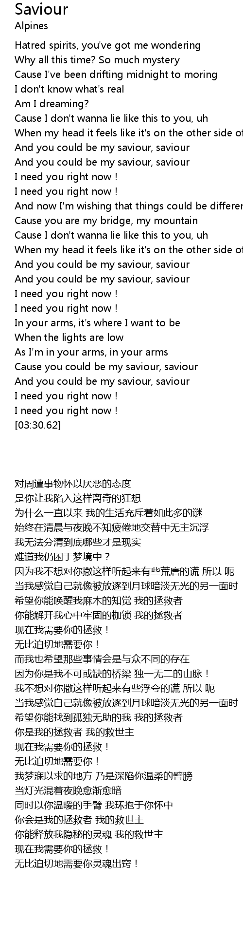 | [03:18.88] | 现在我需要你的拯救! |