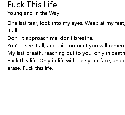 | Fuck this life. Only in life will I see your face, and only in death will it erase. Fuck this life. |