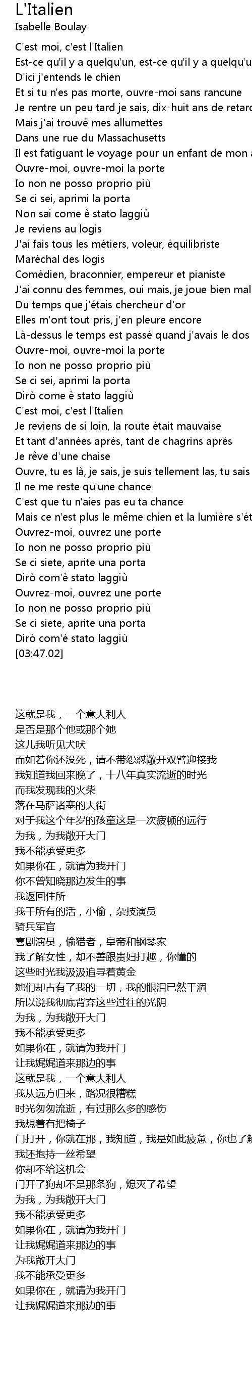 | [02:15.71] | C'est moi, c'est l'Italien |