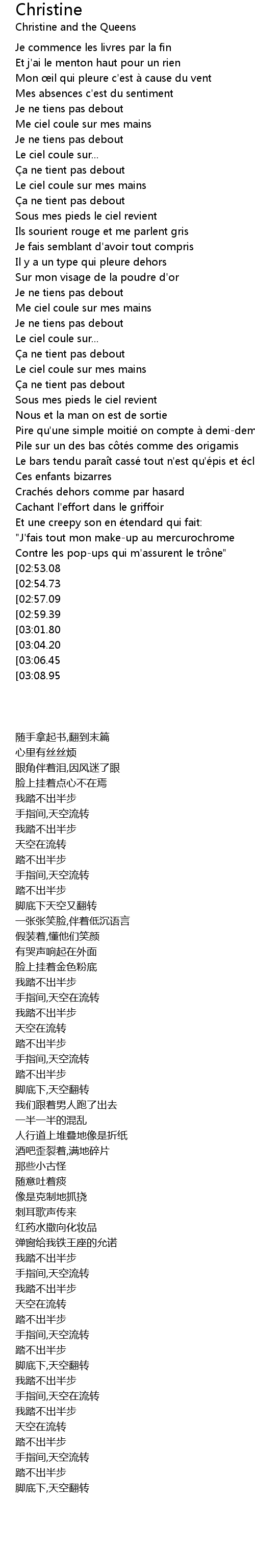 | [02:33.83] | "J'fais tout mon make-up au mercurochrome |