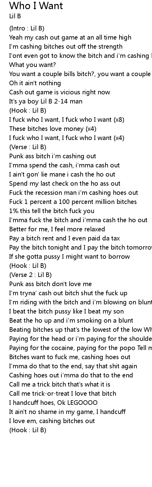 | I'mma fuck the bitch and i'mma cash the ho out | |