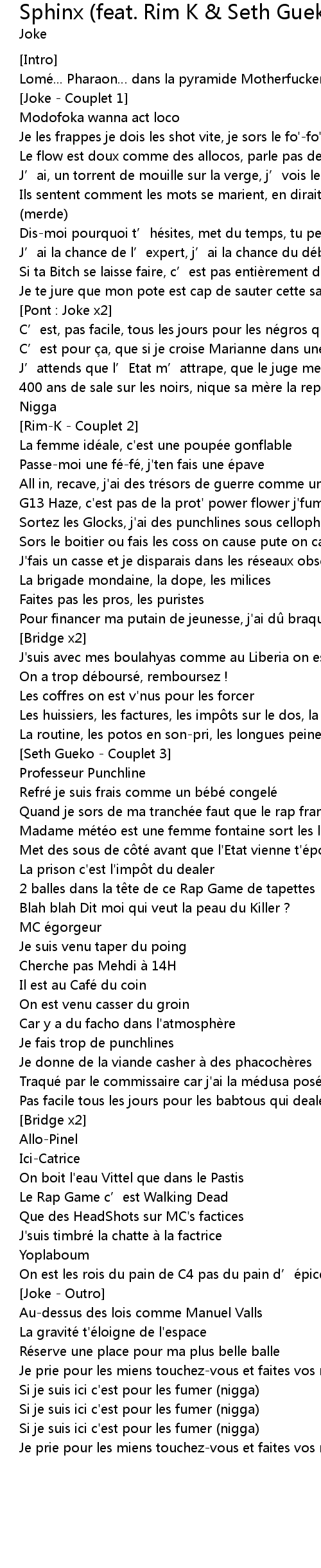 Sphinx (feat. Rim K & Seth Gueko) 歌词