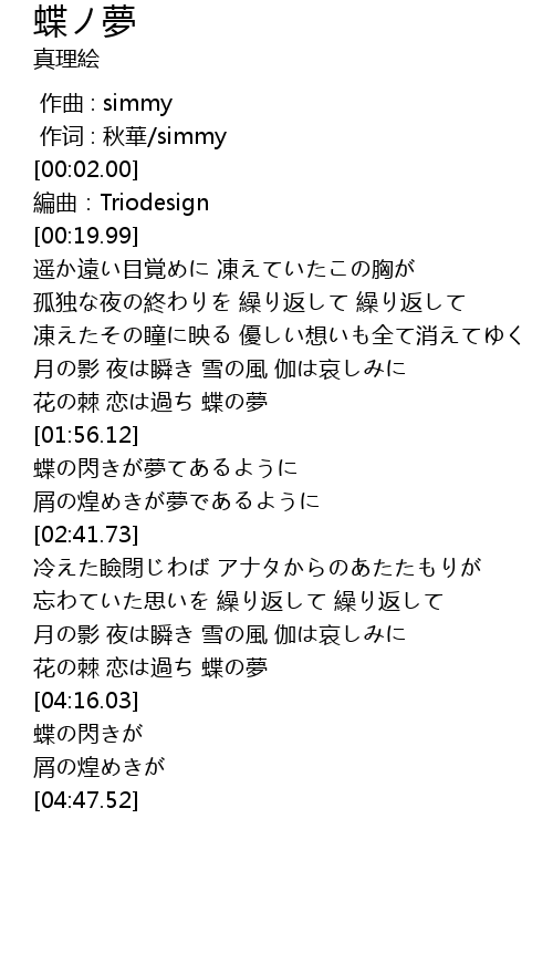 | [04:01.47] | 花の棘 恋は過ち 蝶の夢 |