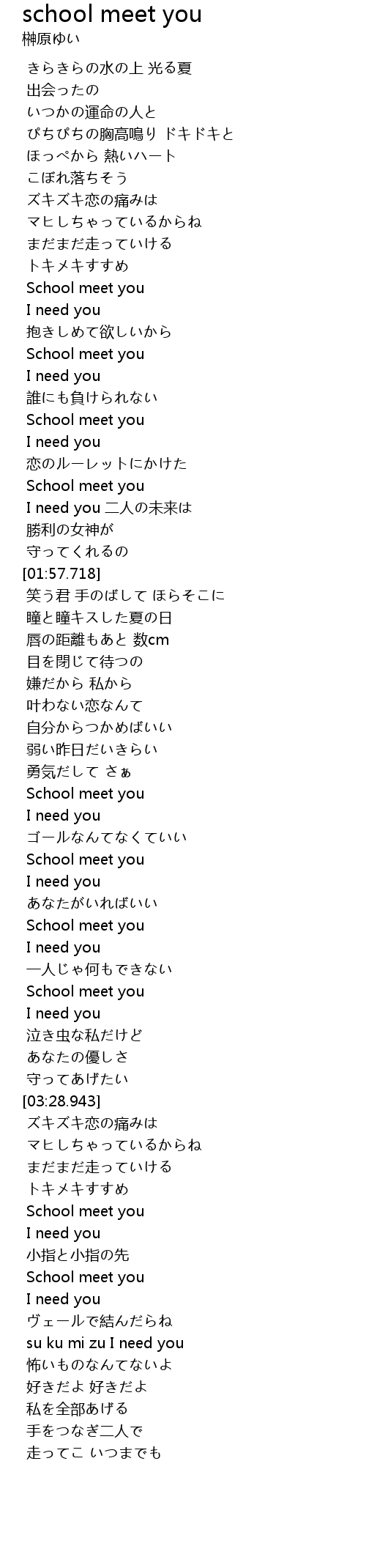 | [01:31.960] | School meet you |