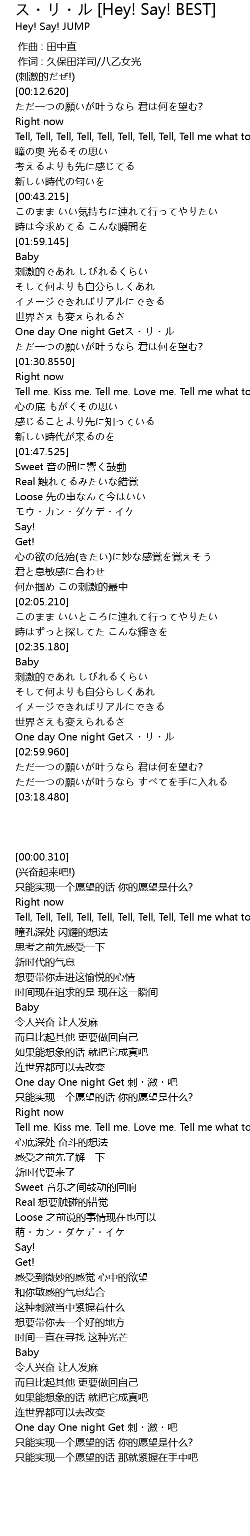 | 歌曲 | ス・リ・ル [Hey! Say! BEST] |