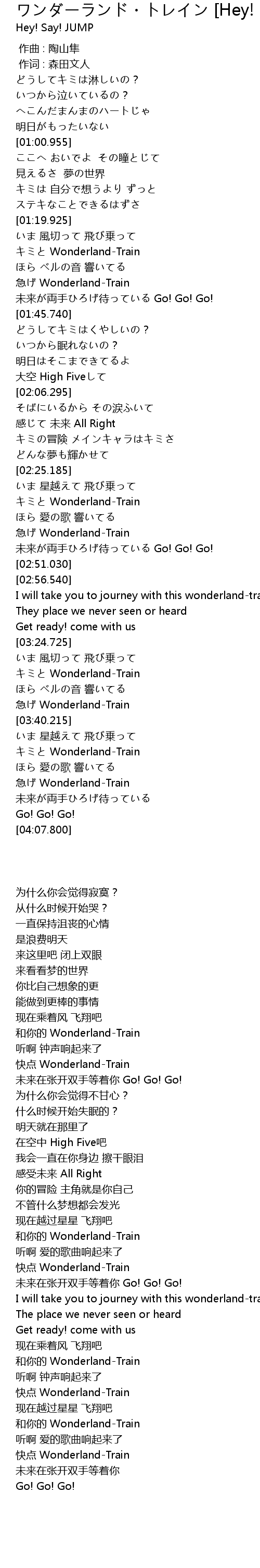 | 歌曲 | ワンダーランド・トレイン [Hey! Say! 7] |