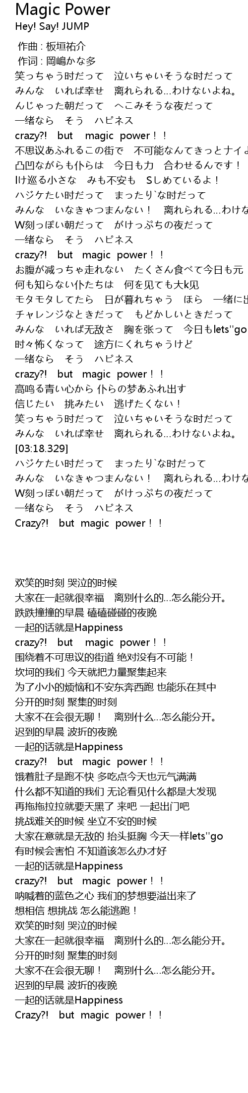 | [02:12.230] | みんな いれば无敌さ 胸を张って 今日もlets''go |