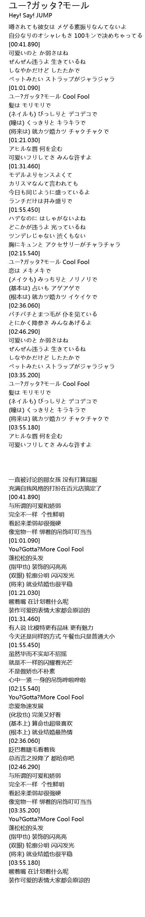 | [03:35.500] | ユー?ガッタ?モール Cool Fool |